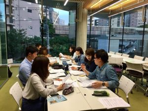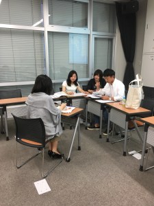 いよいよ合宿が二日後に迫り、どのようなインタビューにしたいか、何を聞きたいのかなど準備があわただしくなってきました。今日は、合宿で必要なものなどを確認した後に、内藤先生相手にインタビューの練習を行いました。内藤先生はインタビュー対象者の方とお会いした経験をもとに、対象者の方々になりきって反応していました。
